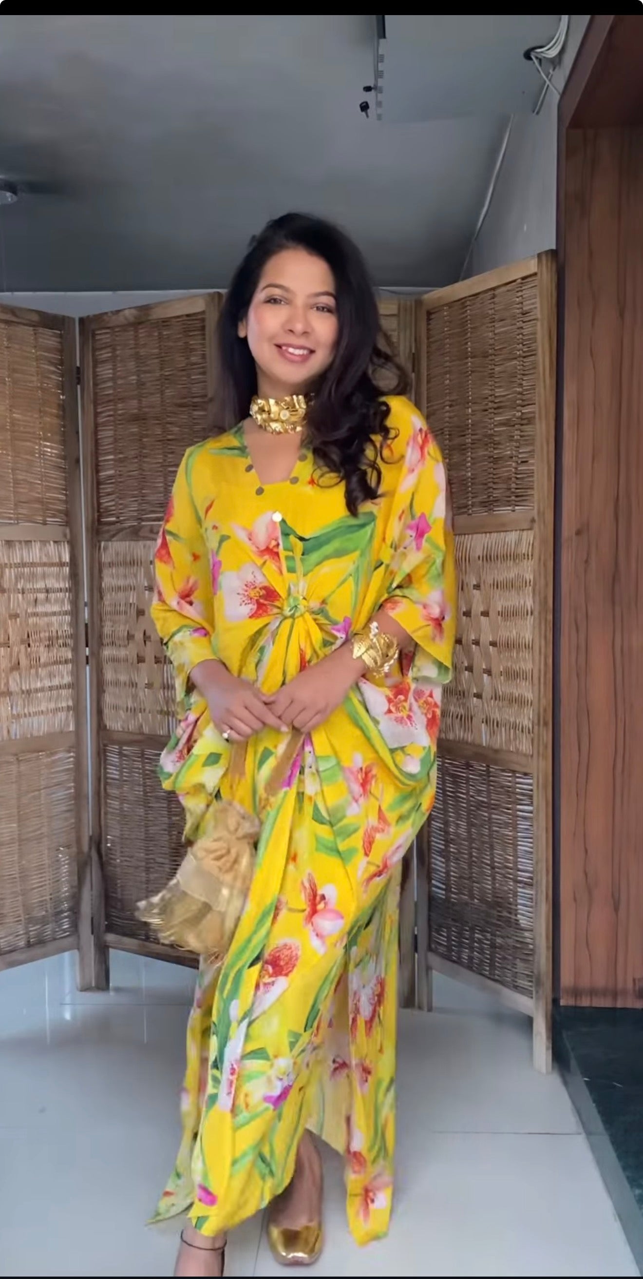 A must-have jutti in a golden splash, perfect for the upcoming festive season.