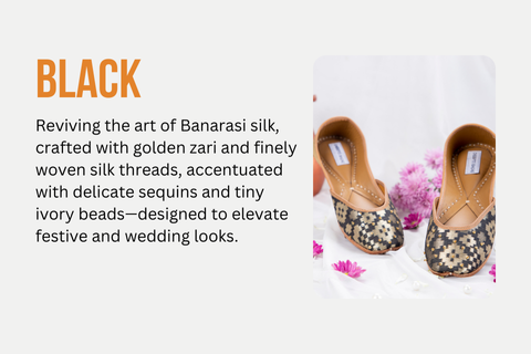 Reviving the art of Banarsi silk, made by golden zari and woven by silk thread, accentuated with sequin and tiny ivory bead.