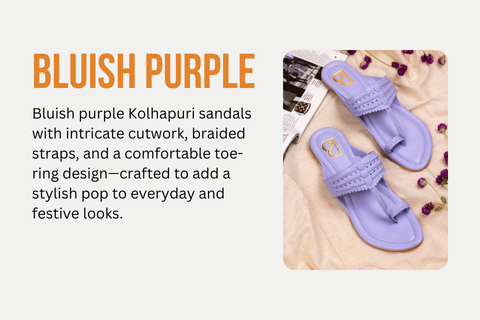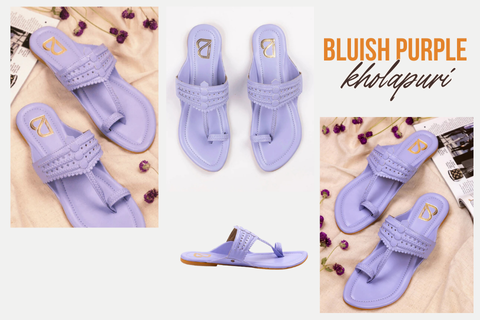 Bluish Purple Kolhapuri sandals showcase a striking blend of style and comfort with intricate cutwork, braided straps, and a relaxed toe ring design. Perfect for any occasion!