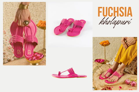Fuchsia Braided Pattern Plain Kolhapuris