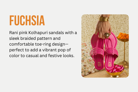 Add a pop of color to your look with Rani pink  Kolhapuri sandals, featuring a sleek braided pattern and a comfy toe ring design. Perfect for casual and festive wear!