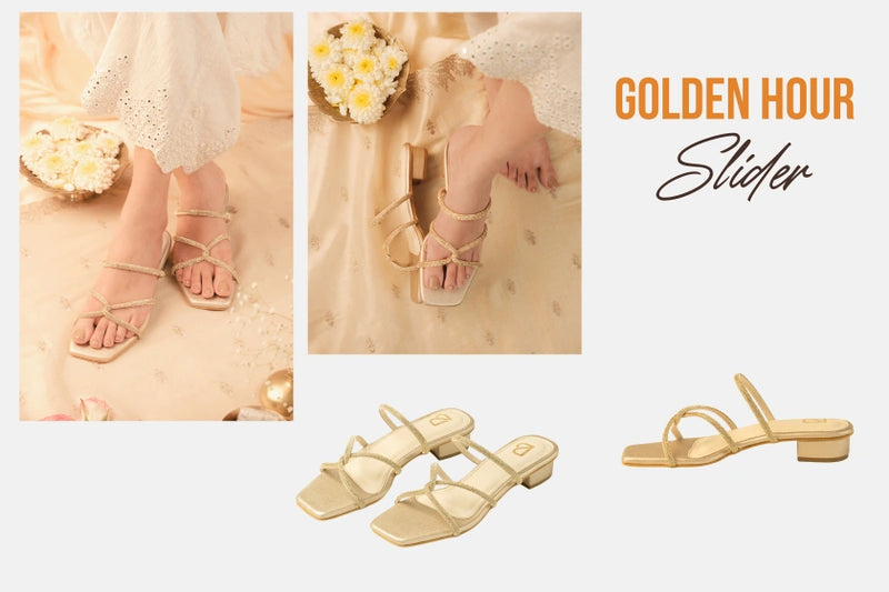 Pair them with your sarees, lehengas, or even fusion wear – these heels are your Golden Hour essential.