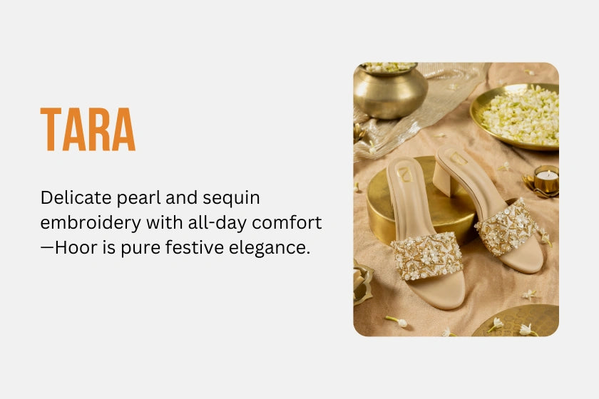 Where elegance meets comfort. Hand-embroidered with pearls, sequins, and beads, Hoor is designed to add a subtle glow to your festive and wedding looks.